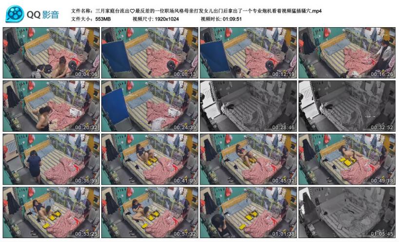 【影片名称】:家庭台流出最反差的一位职场风格母亲打发女儿出门后拿出了一个专业炮机看着视频猛插骚穴【影片格式】:MP4【影片大小】:553MB【影片时间】:01:09:51【影片说明】:无码【影片截图】: